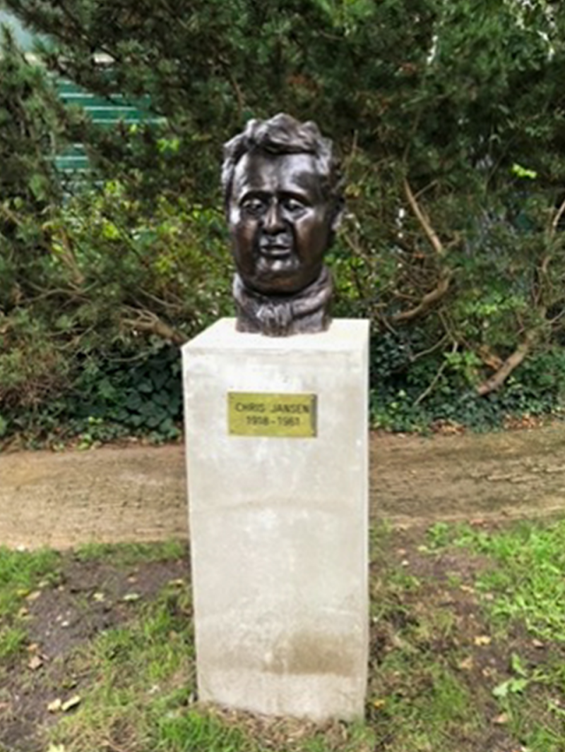 Portret van Chris Jansen in Willem Jansen plantsoen in Westzaan.